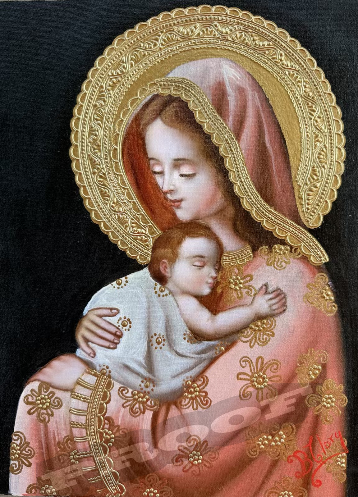 “THE VIRGIN AND CHILD” 2025, Original oil on canvas.