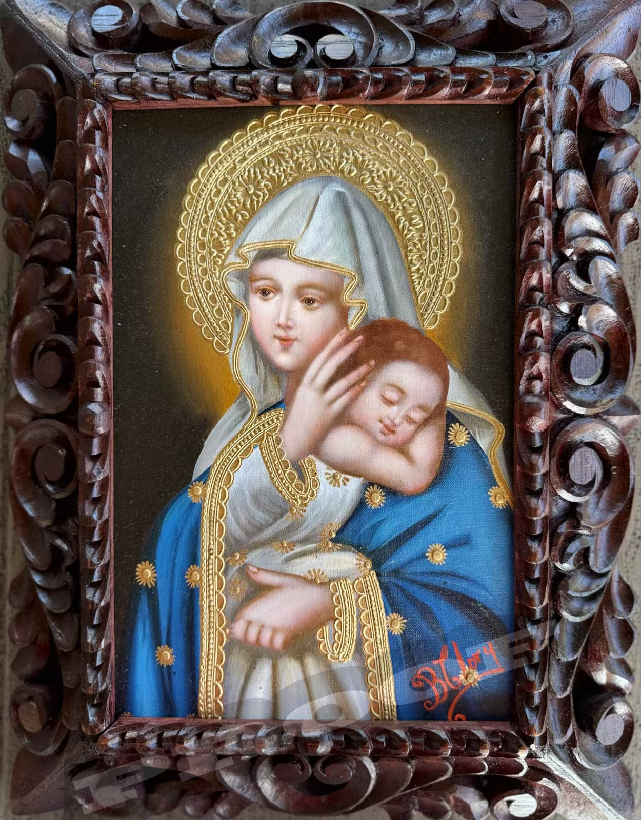 THE VIRGIN AND CHILD, original oil on canvas.