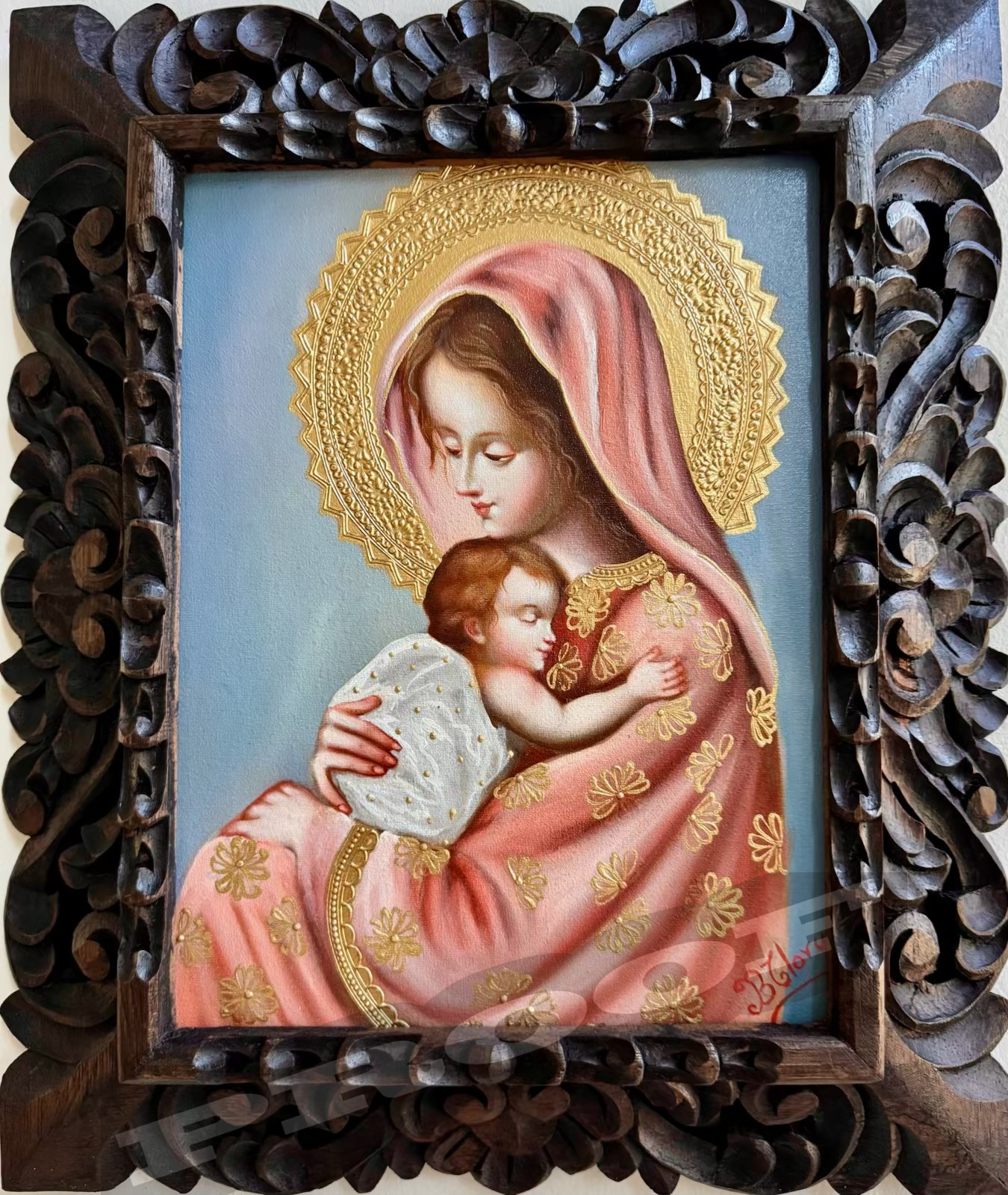 THE VIRGIN AND CHILD, original oil on canvas painting